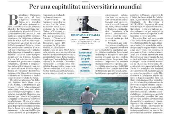Entrevista a Josep M. Vilalta, per Rosa Maria Bravo (El Punt Avui). El maig passat Barcelona va ser la seu de la Conferència Mundial d’Educació Superior de la…
