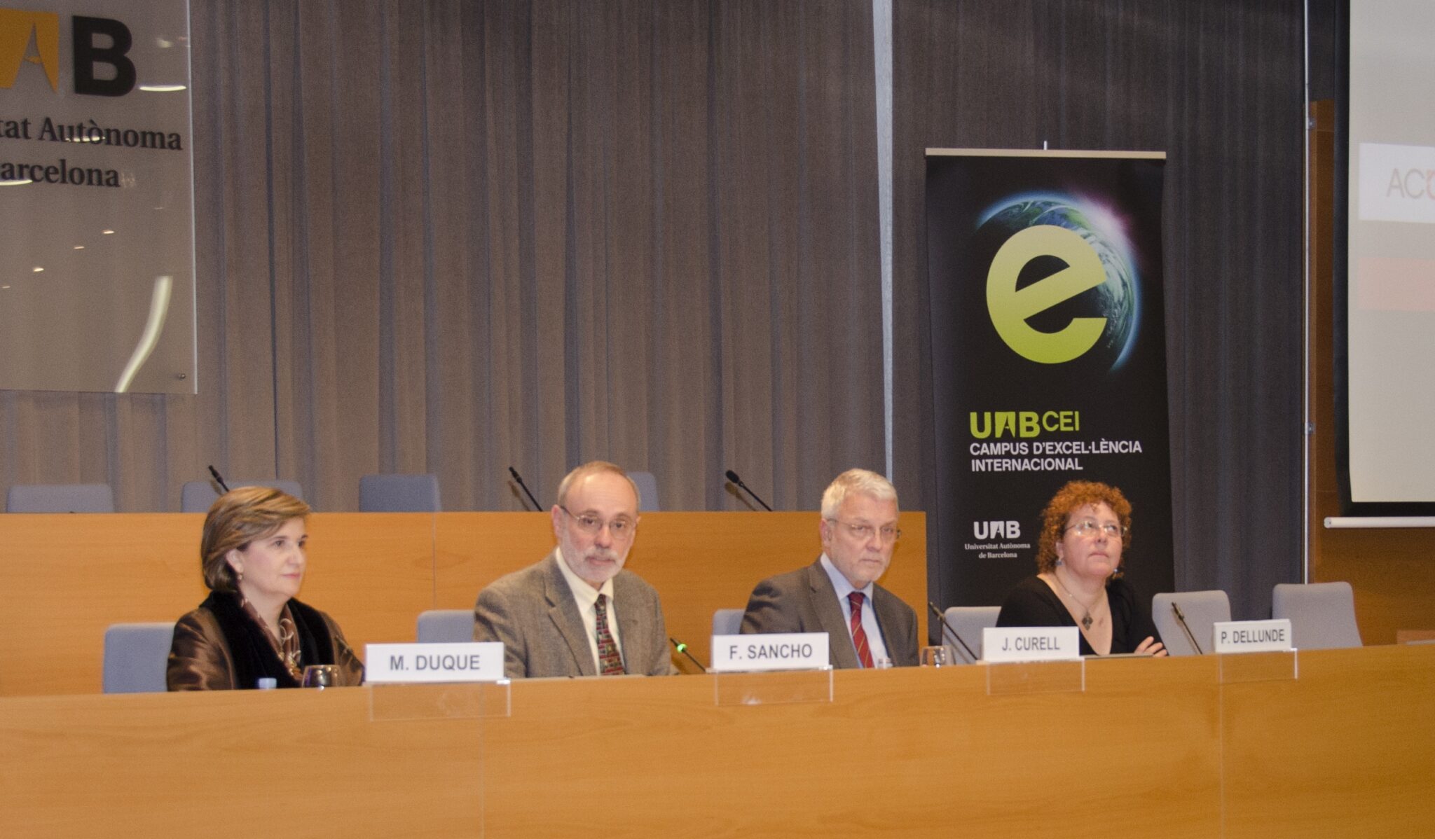 Aquest dilluns 25 de novembre s’ha celebrat la Jornada sobre Doctorat Internacional ‘New opportunities for a new horizon’, organitzada conjuntament per l’ACUP i la UAB (Escola de Doctorat i Campus d’Excel·lència Internacional UAB-CEI) a la sala d’actes del Rectorat de la UAB, al Campus de Bellaterra. L’objectiu de la jornada era donar a conèixer l’oportunitat dels programes de doctorat internacional com estratègia d’atracció de talent i internacionalització de la recerca i el seu paper clau en el marc de les noves polítiques europees. I així mateix promoure la participació i coordinació de programes des de les universitats catalanes. La jornada s’ha pogut seguir a través de Twitter a #DocIntUAB i per streaming. Adjunt trobareu els participants en la jornada i les diverses presentacions mostrades.