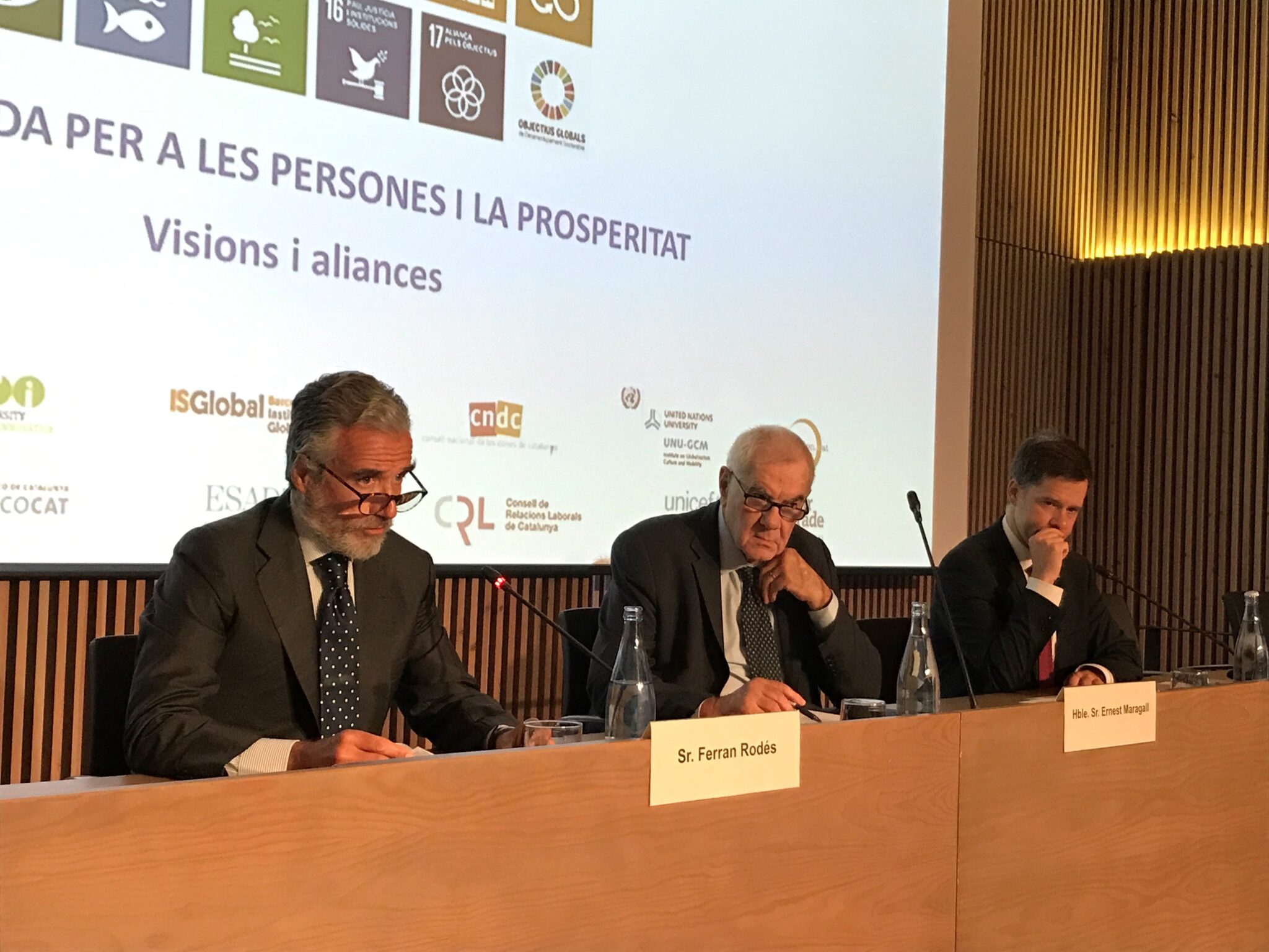Durant la inauguració del cicle de jornades ‘L’Agenda 2030: Transformar Catalunya, millorar el món’, el conseller va expressar la voluntat que l’Agenda 2030 “sigui més que una marca o una retòrica” i que “és i ha de ser un compromís global de país. Ha de tenir solvència i arrelament en la societat catalana”. De la seva banda, Josep M. Vilalta, secretari executiu de l’ACUP i director de la Global University Network for innovation, que també va participar a la taula “Una agenda per a la prosperitat”, va expressar el compromís de les universitats públiques catalanes de posar l’Agenda 2030 al centre de la seva tasca.